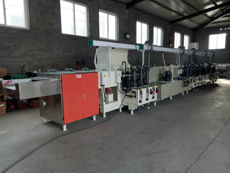 工藝流程:入料→除油→壓力洗+市水洗 →微蝕→壓力洗+市水洗→酸洗→壓力洗+市水洗→純水洗→→純水洗*4→吸干洗→冷風干→隔離→熱風干→出料
